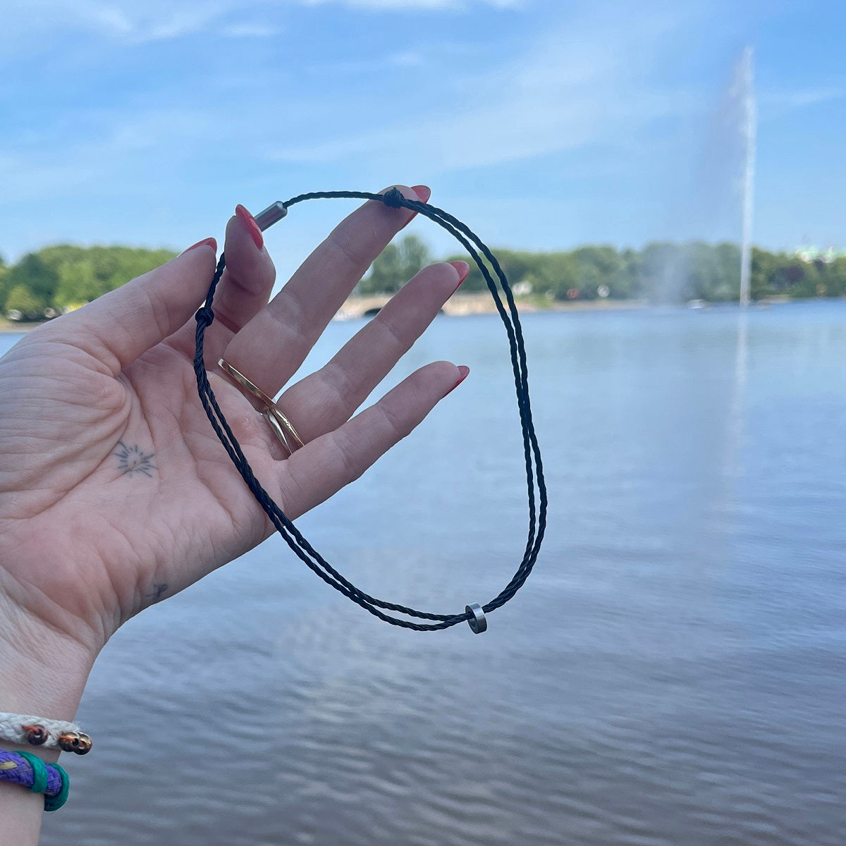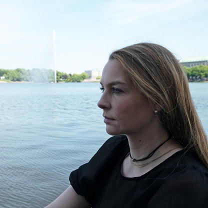 Die Black Wave Halskette besteht aus alten Fischernetzen. Wir verwandeln sie in dein persönliches Upcycling-Statement zum Meeresschutz – alles in Handarbeit in Hamburg und Porto!
