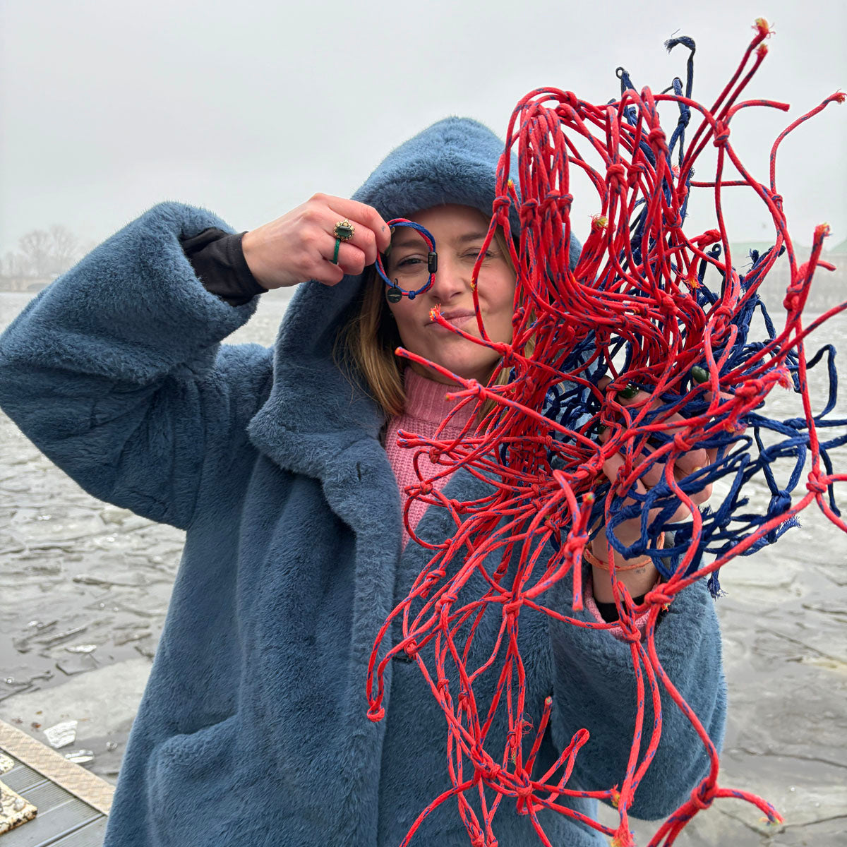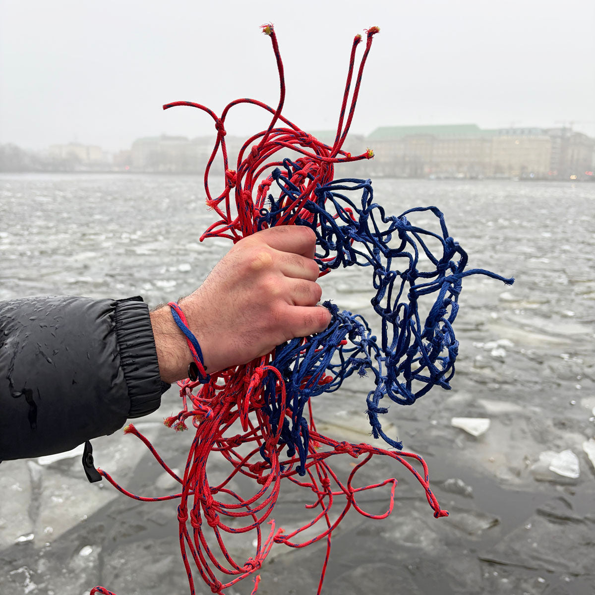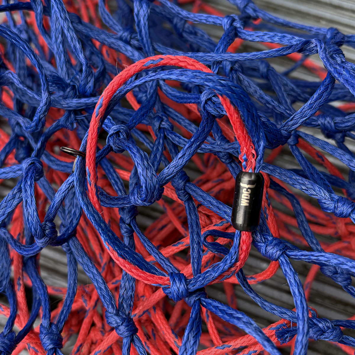 - Made from recycled fishing nets (HDPE) in red and blue